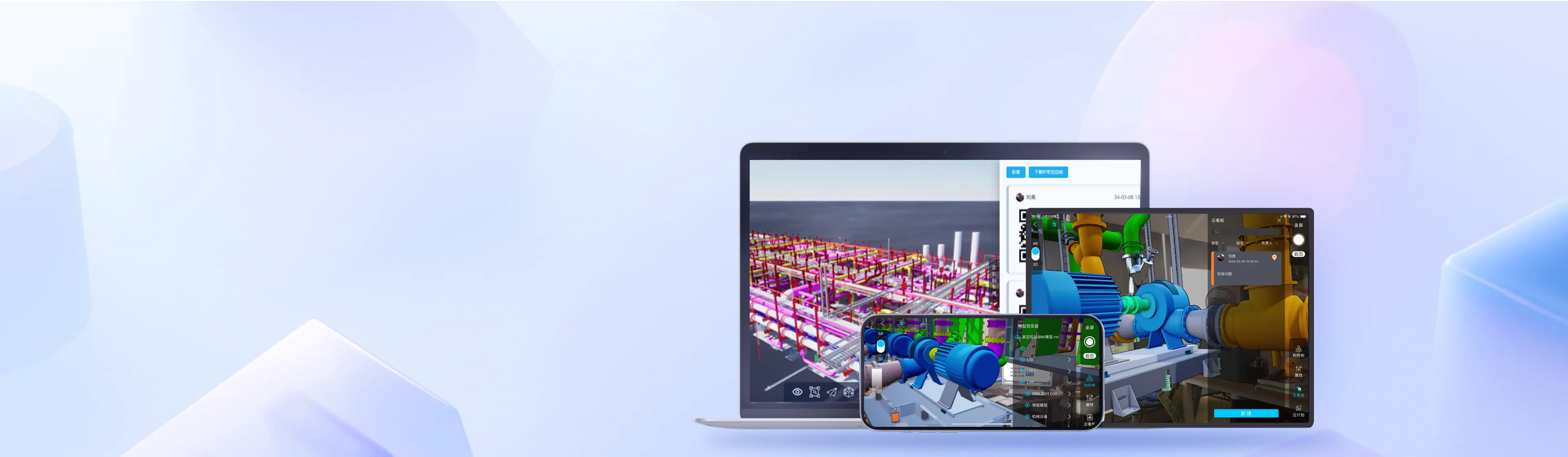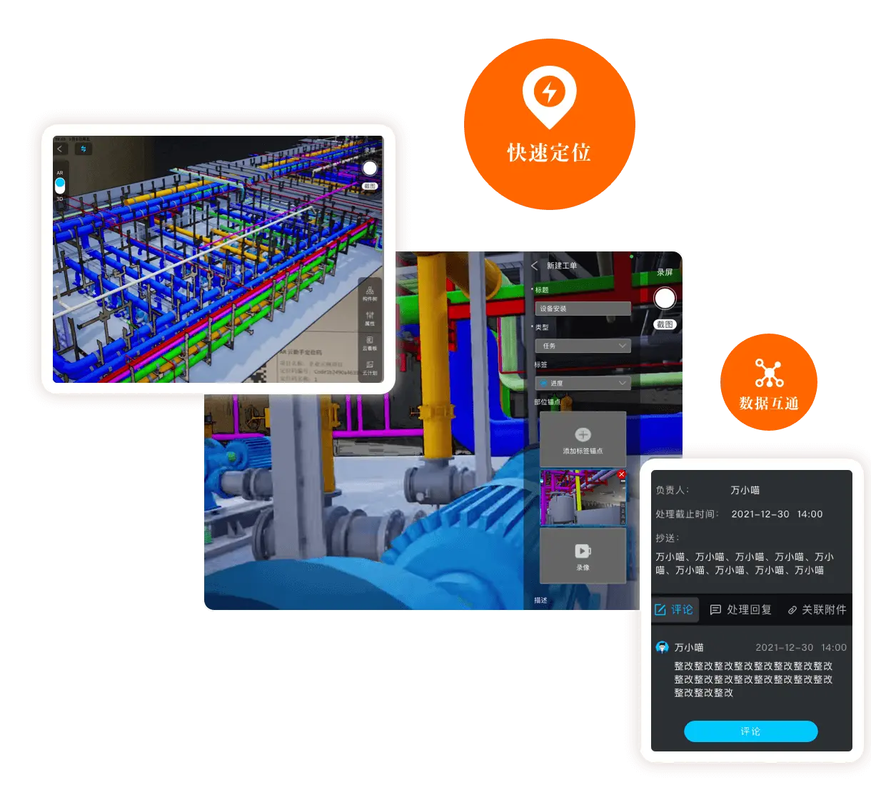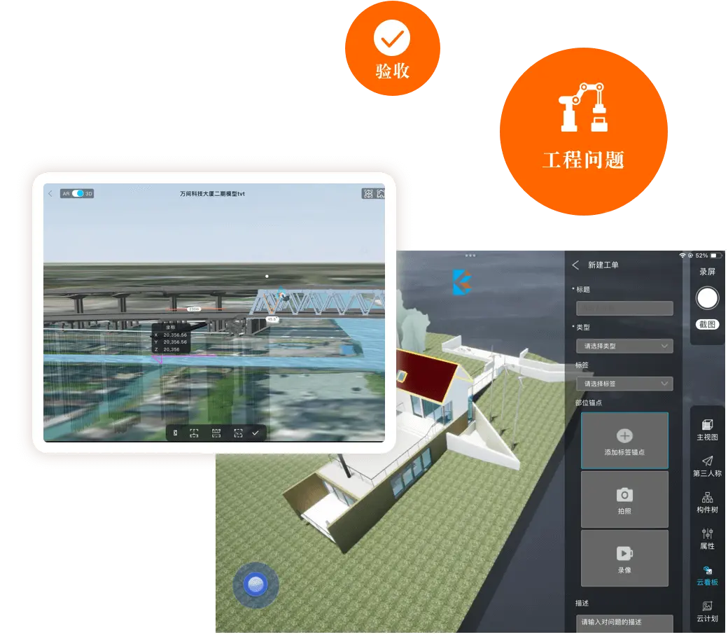 与Web端协同平台打通,集成云文档、云计划、云建造等多个业务平台,一个APP满足多个平台的现场信息录入